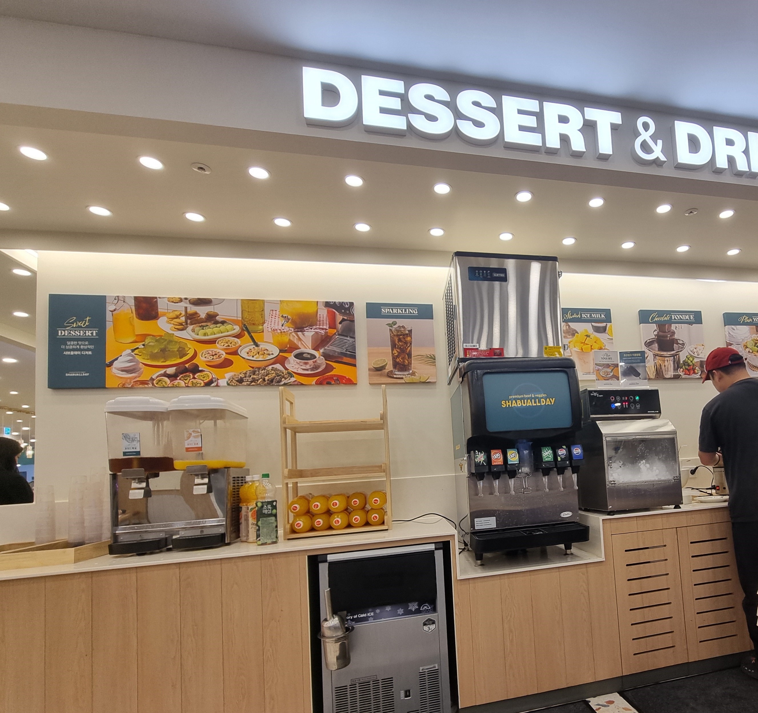 일단 저희 자리 바로 왼쪽이 디저트 바였는데 디저트가 아이스크림, 초코분수, 팥빙수재료 이렇게가 전부였어요..
